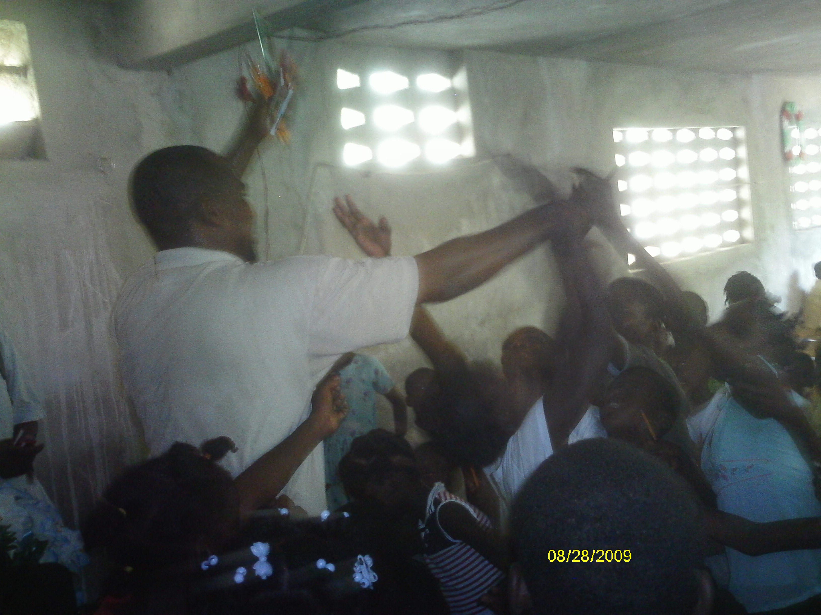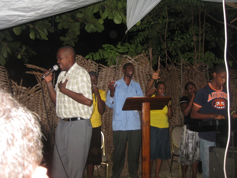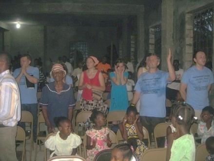 Port-au-Prince but we got there in about 3 hours, which was good considering the 6-hour drive we did last time. Our host was Pastor John a friend of Jasmin and the leader of a church in the vicinity of Gonaives. The roads, poverty, and heat were a shock to our group but greater was the joy when in open air we were able to worship with our brothers and sisters in Haiti.For two nights we had worship services in open air because the house used by the New Covenant Christian Church was too small to hold all the attendants, which came from all the area around. It was a great joy to see the children singing so loud and fully hearten, to hear their prayers and see their thankfulness even in the face of such harsh life. The church had multiplied since last year and nylon covers were put over the yard so services can be held there. A girl whose parents practiced voodoo was brought and she was shaking and screaming infernally.